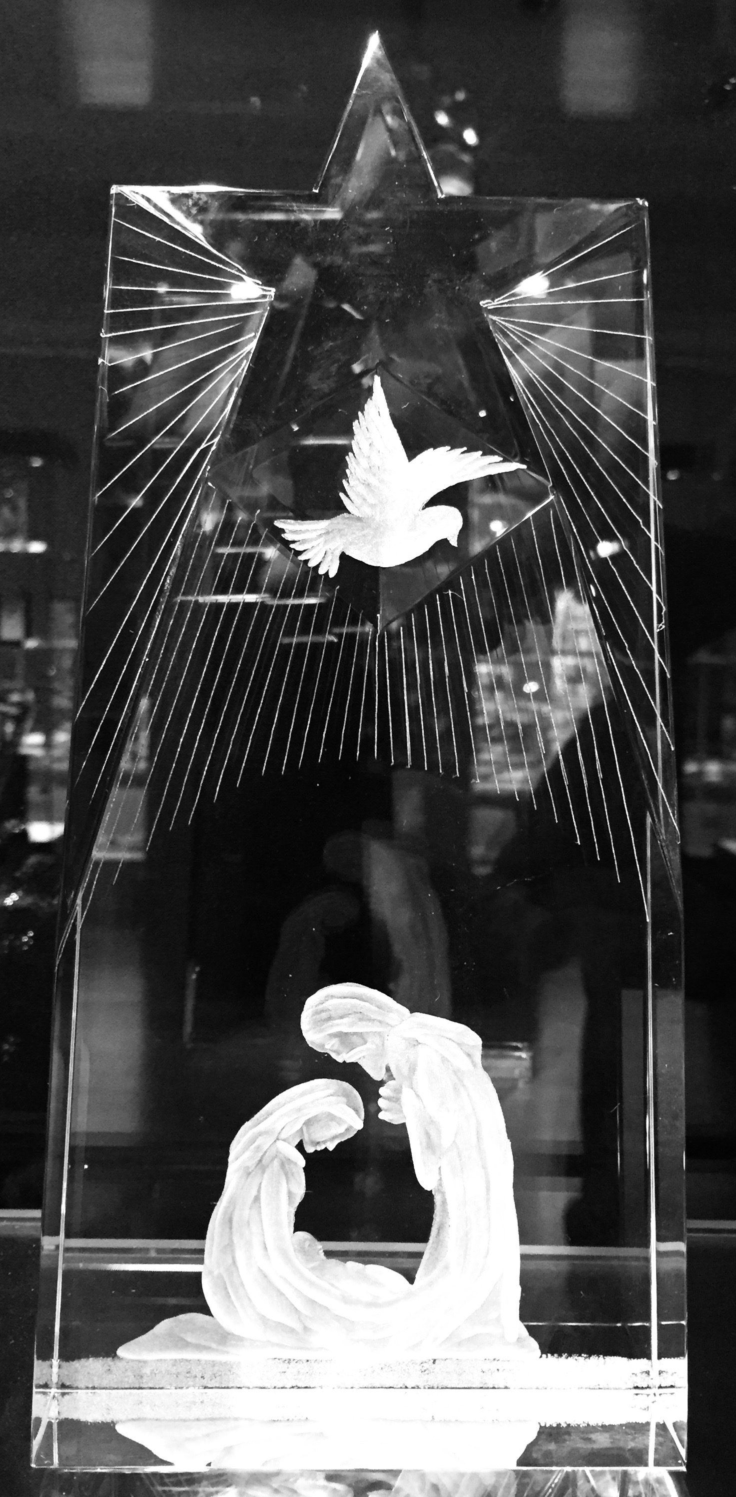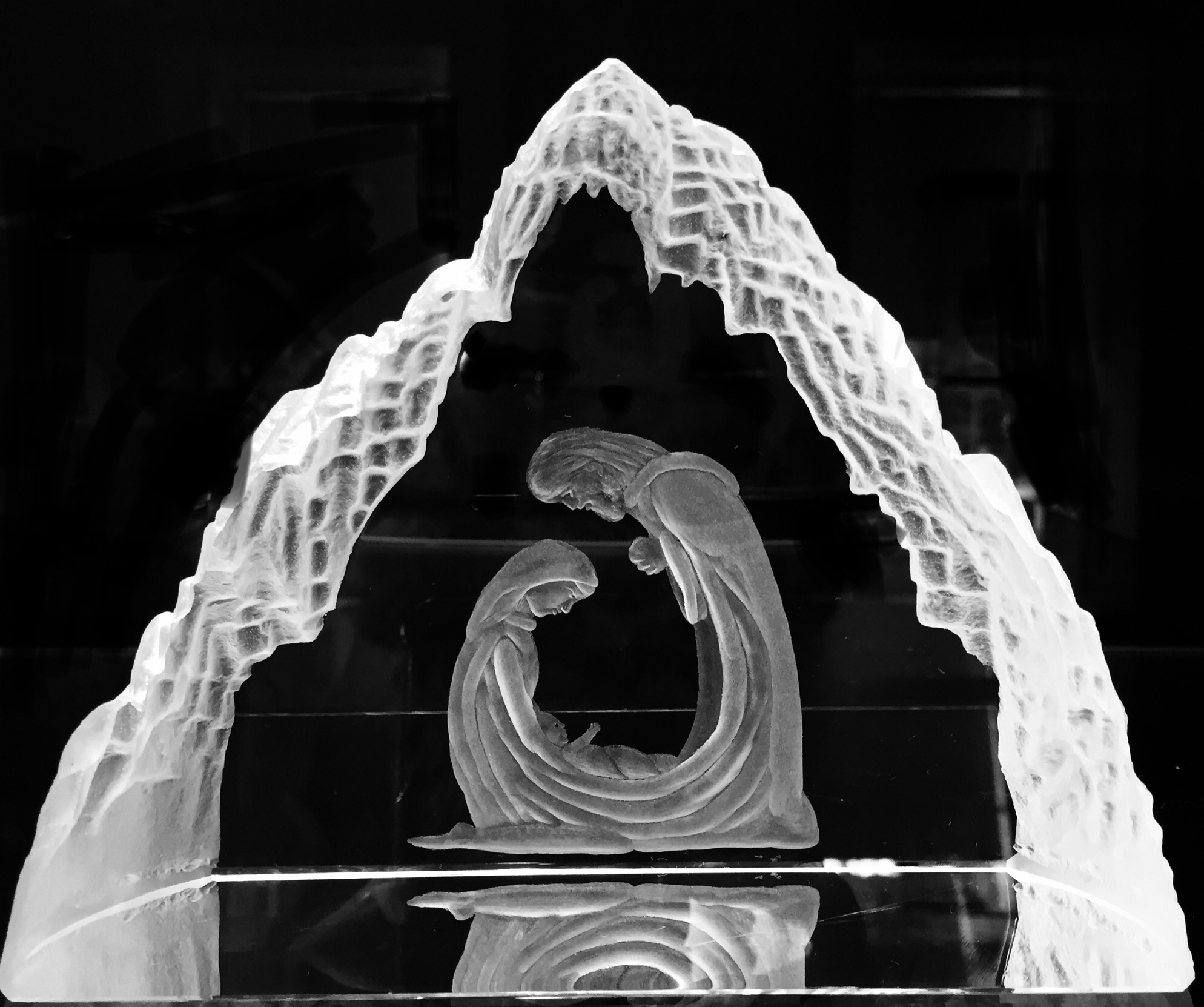 Ice Block with the Nativity scene a symbol of the world over. aChristmas special piece 30 hours engraving time.also other blocks available