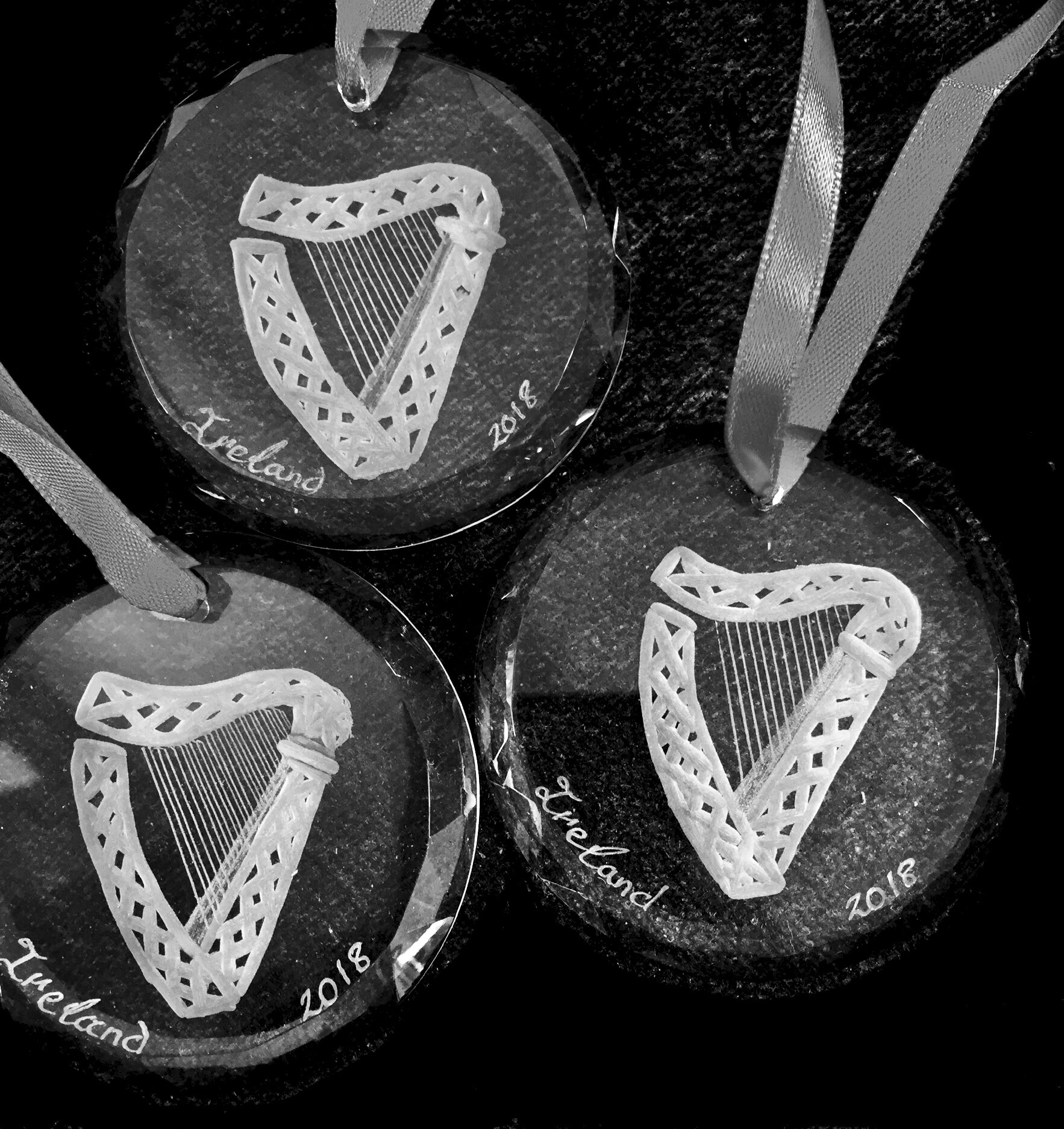 Irish Christmas Ornaments a must for your tree ,take a piece of Ireland home to your house , comes with a green ribbon ,email me.for names, date, etc...