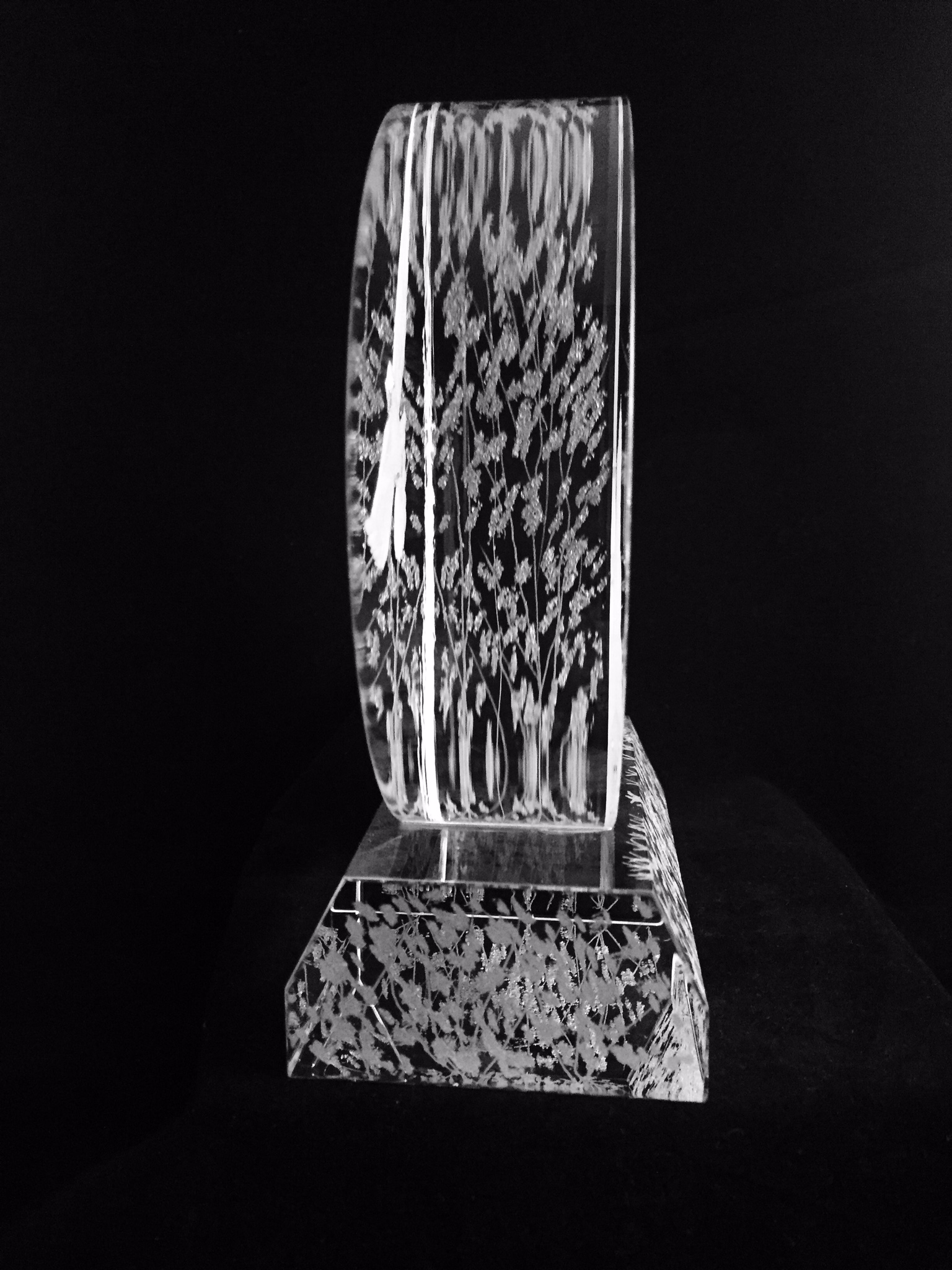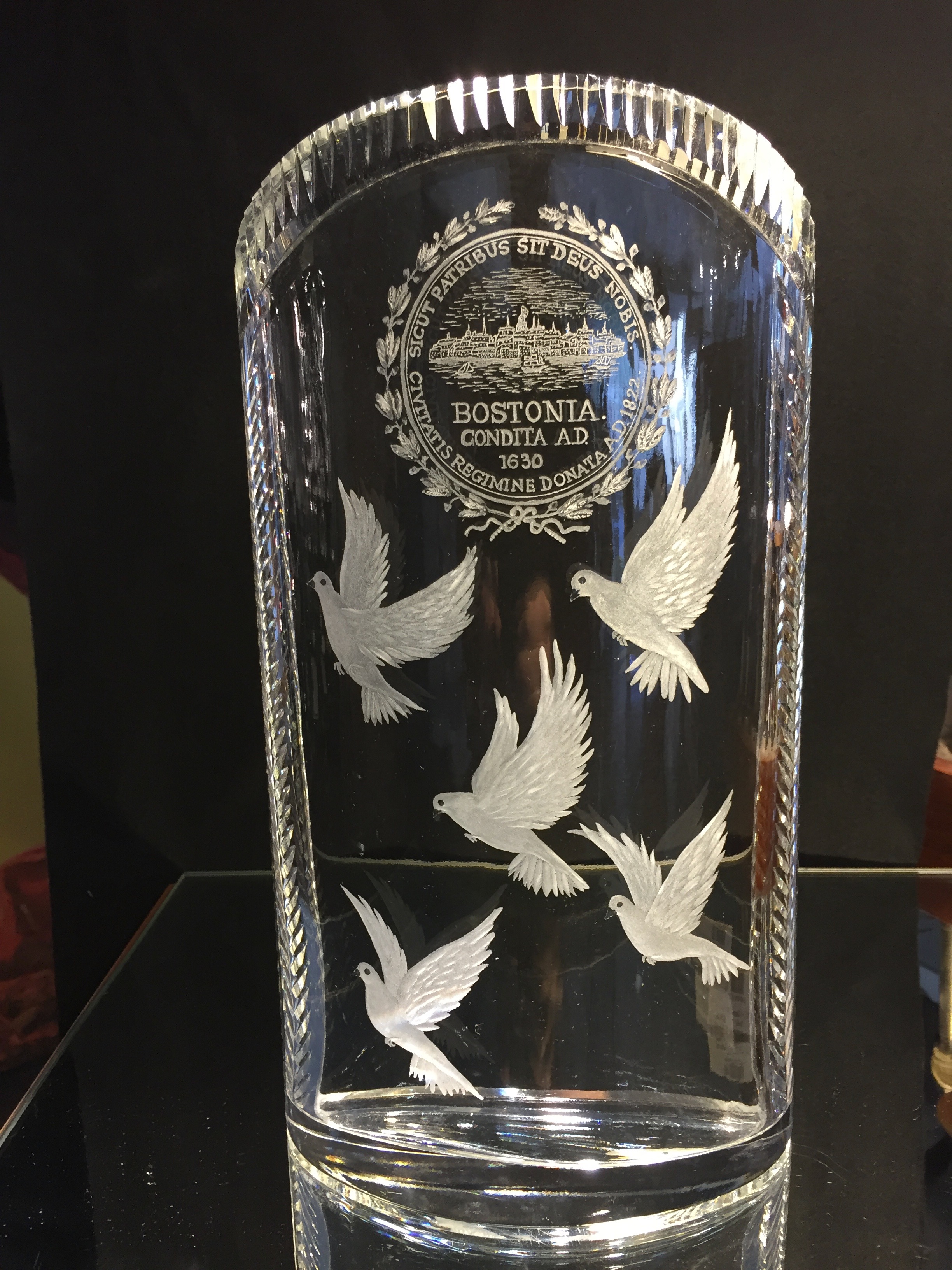 7" round block this piece has engraved Doves, as a sign of peace also can be engraved on any piece of crystal