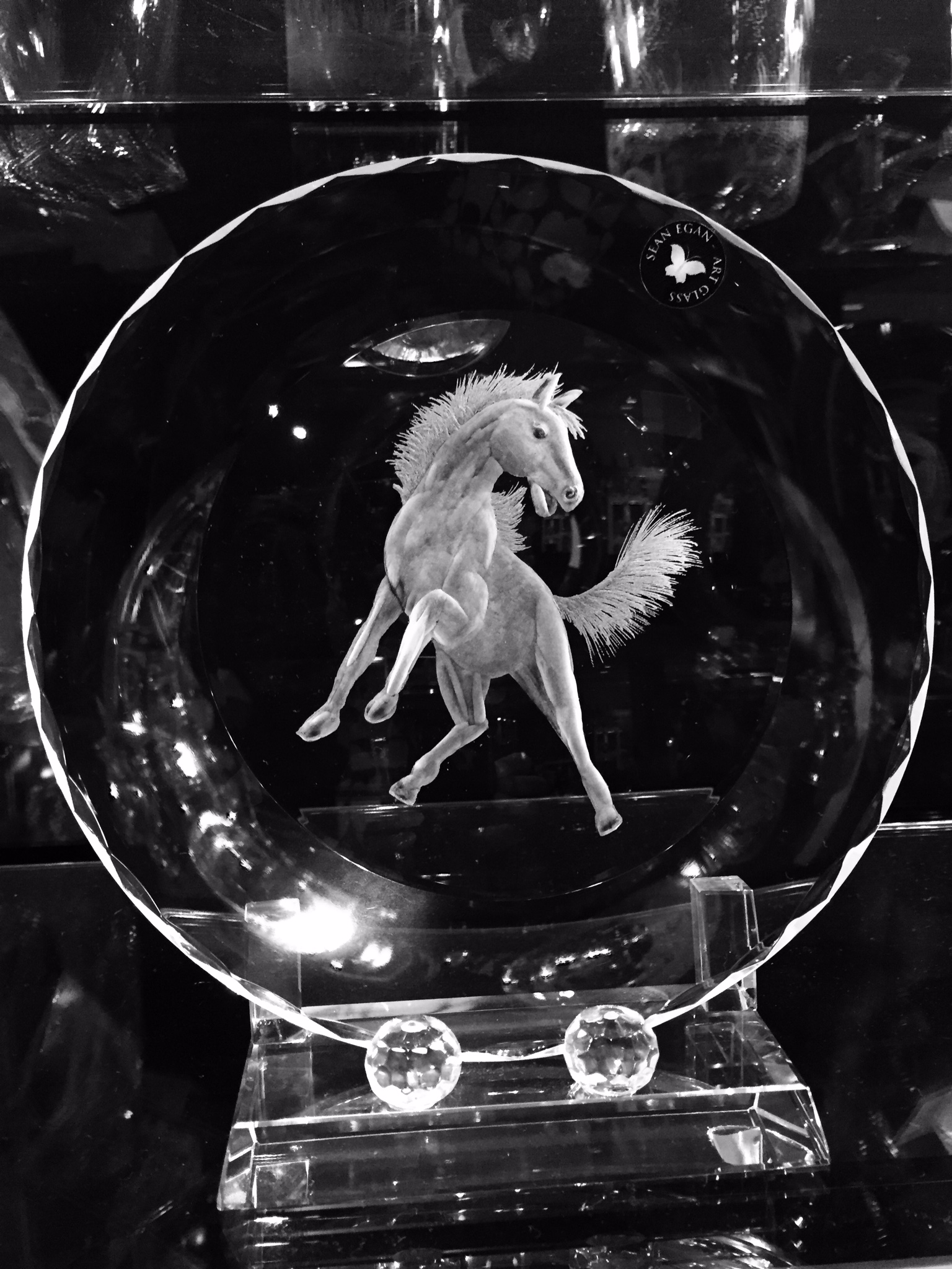 Crystal Blocks in all shape and sizes, Engraved Stallion on a clear block ,any kind of horse can be engraved on these blocks just email me for choice.