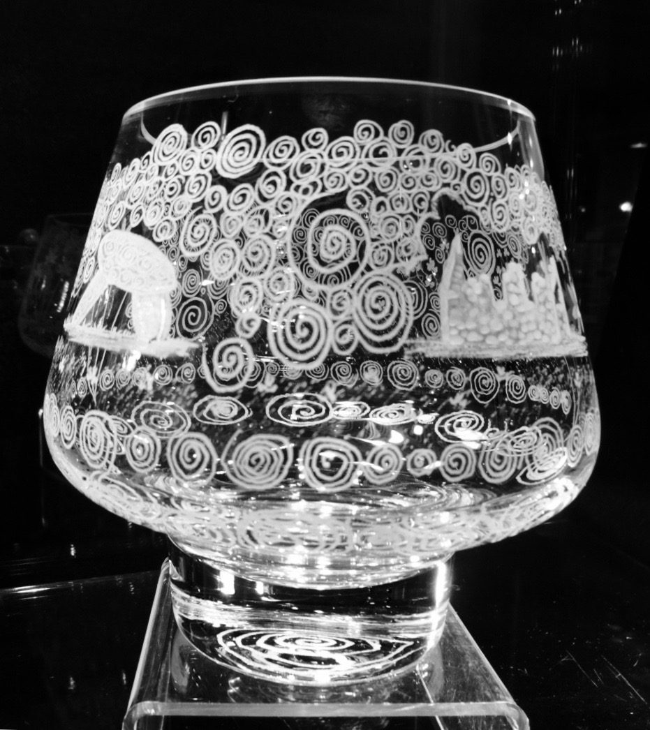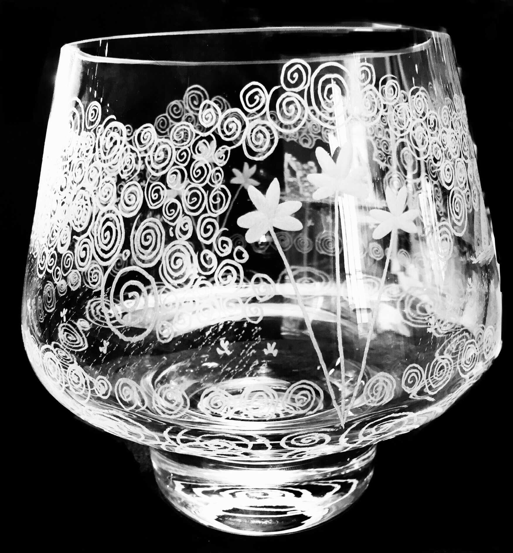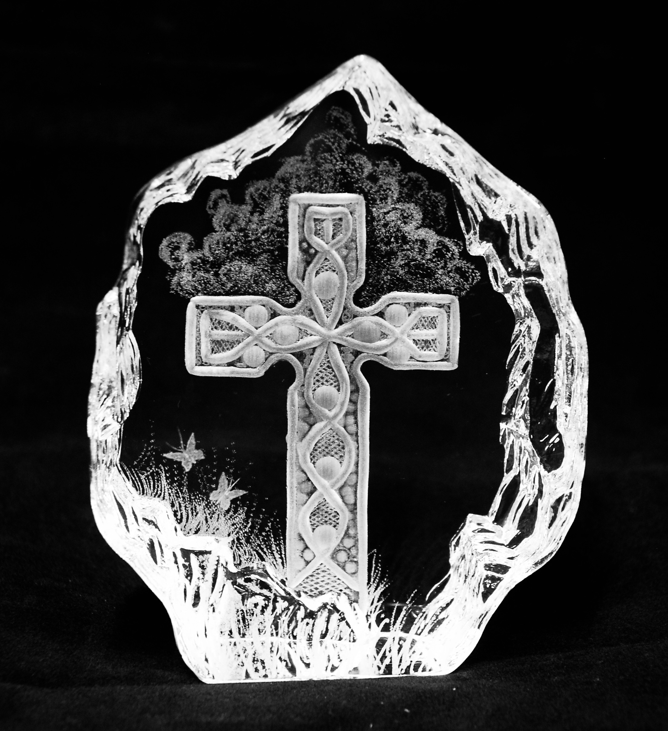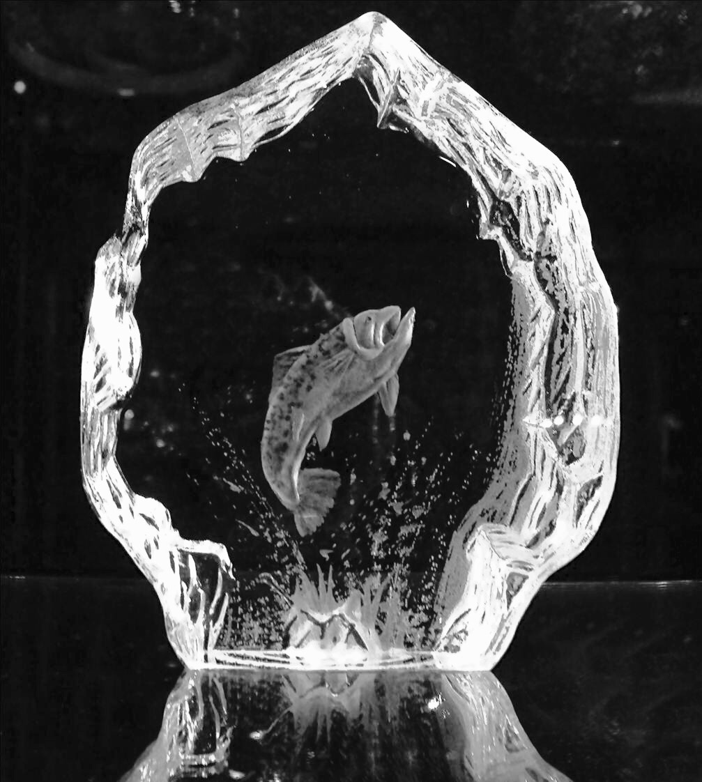 Mystical Ireland" Leaping Salmon. Part of a series of crystal blocks with scenes of Irish landscape. Ireland is famous for its fly fishing and its wild salmon. Block is 4"W x 5.25"H.