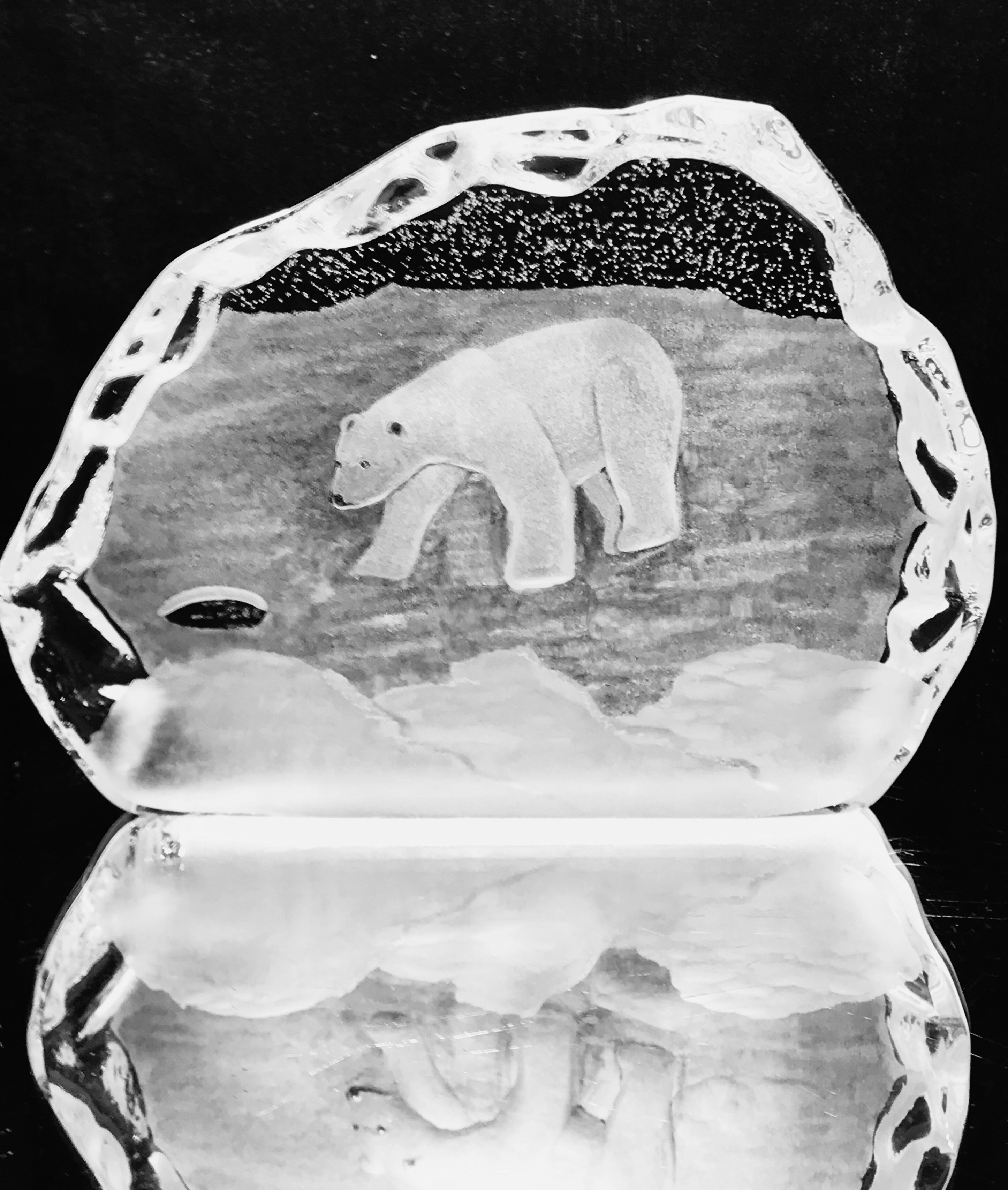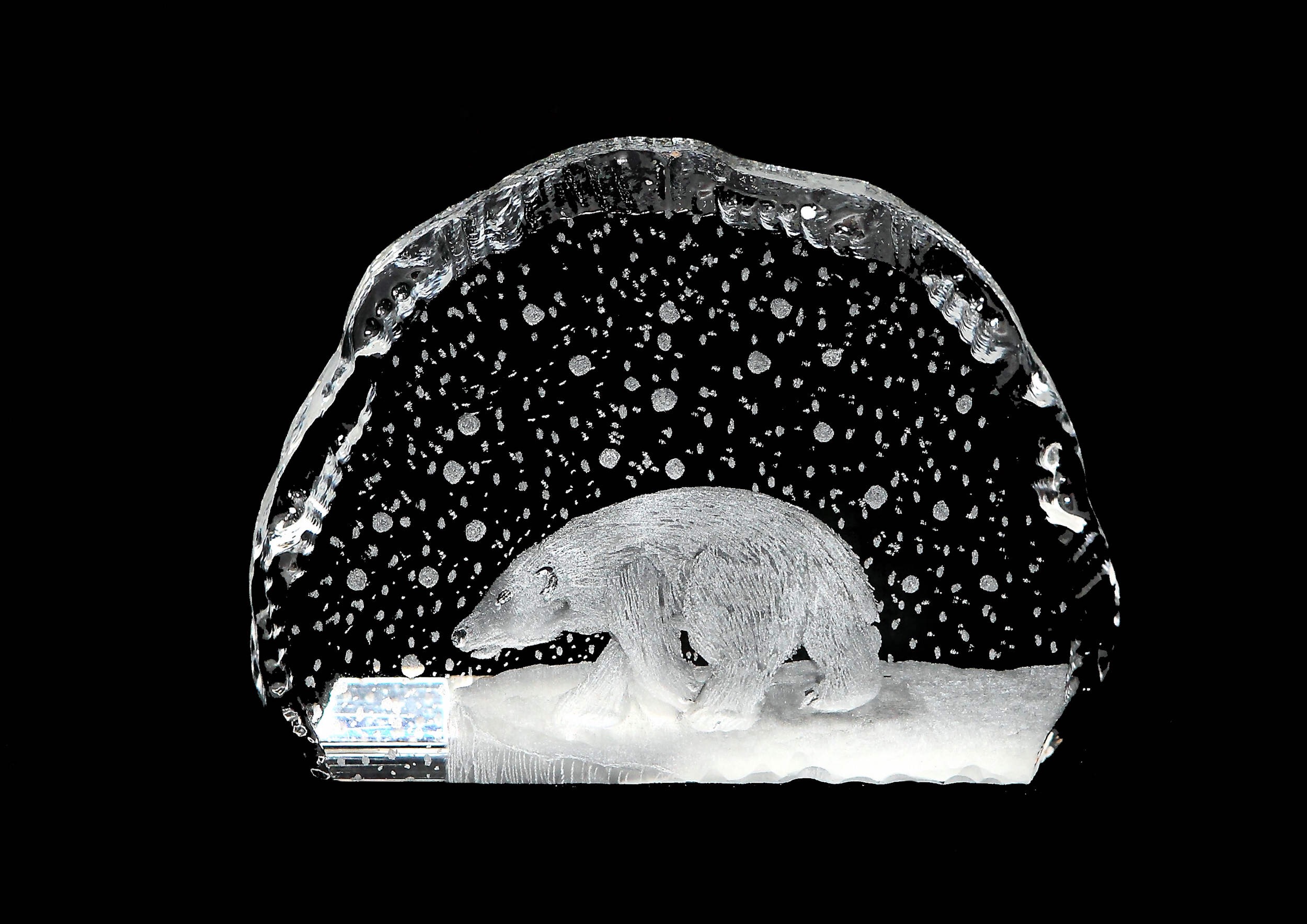 Crystal Block with Polar Bear in the Snow design. all shapes block of crystal email me for special price, Seen here in a Christmas themed block but are a popular engraving all year round.