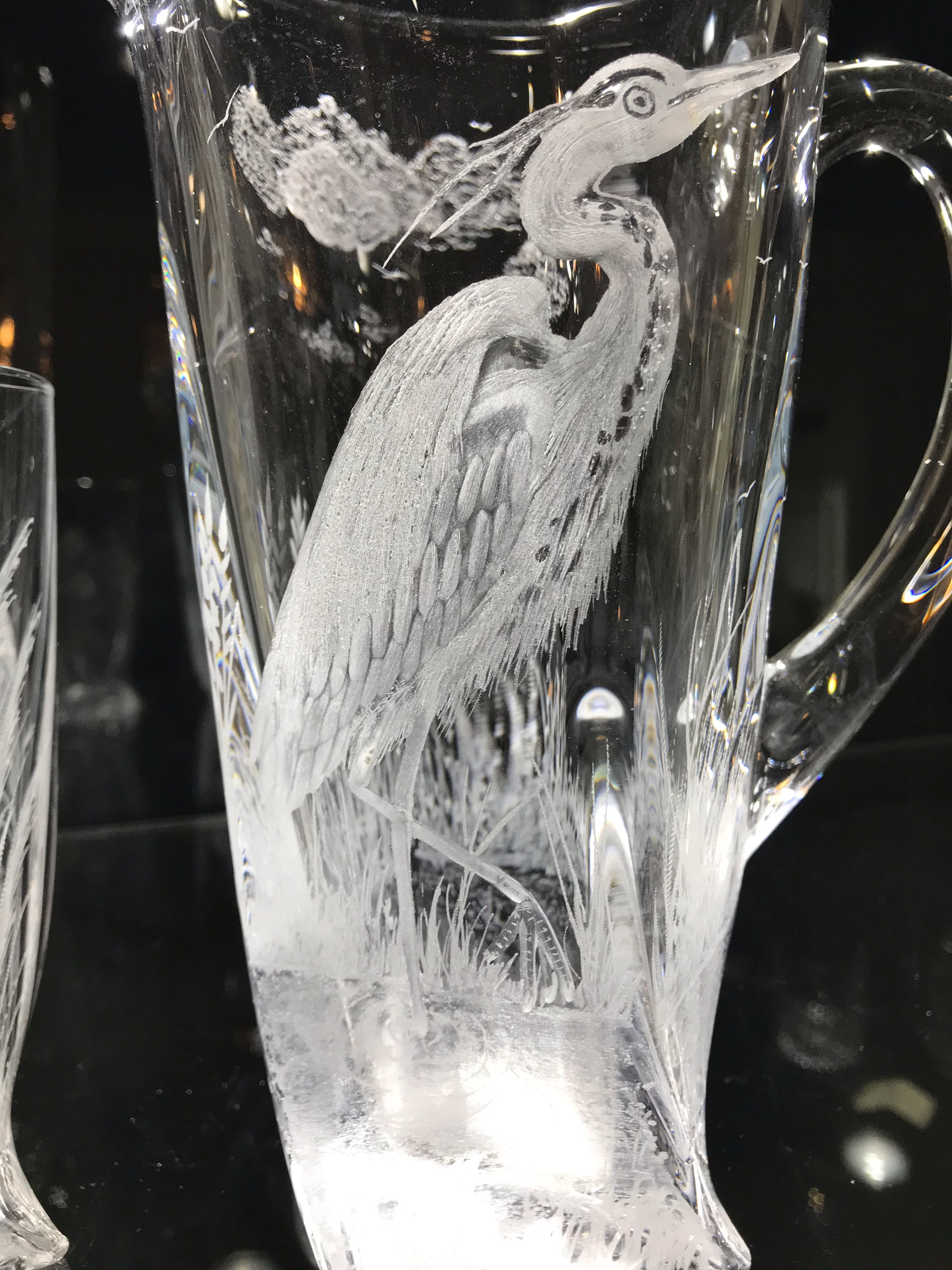 Heron and Peacock Jugs engraved by me here in Waterford . Engraved with passion and perfection, add 2 glasses or more with similar designs for an extra cost pick out your own ideas, Made to order only.
