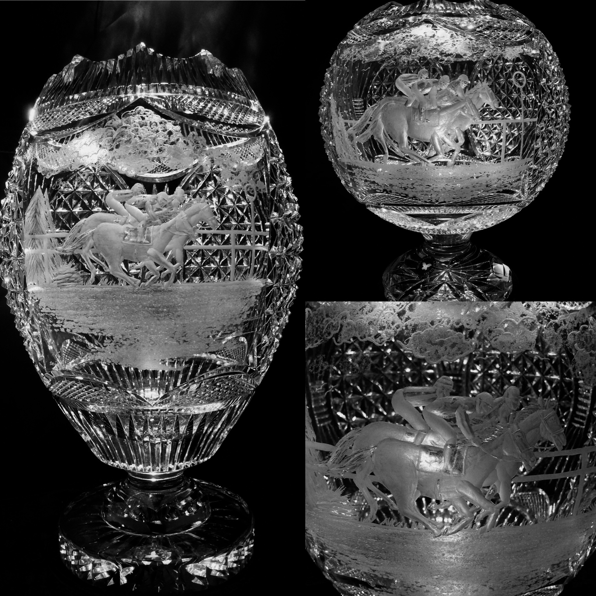 Special designed Cut Crystal Trophy....Seen here as a horse racing prize but can be adapted for Golf or any sport. Available to order