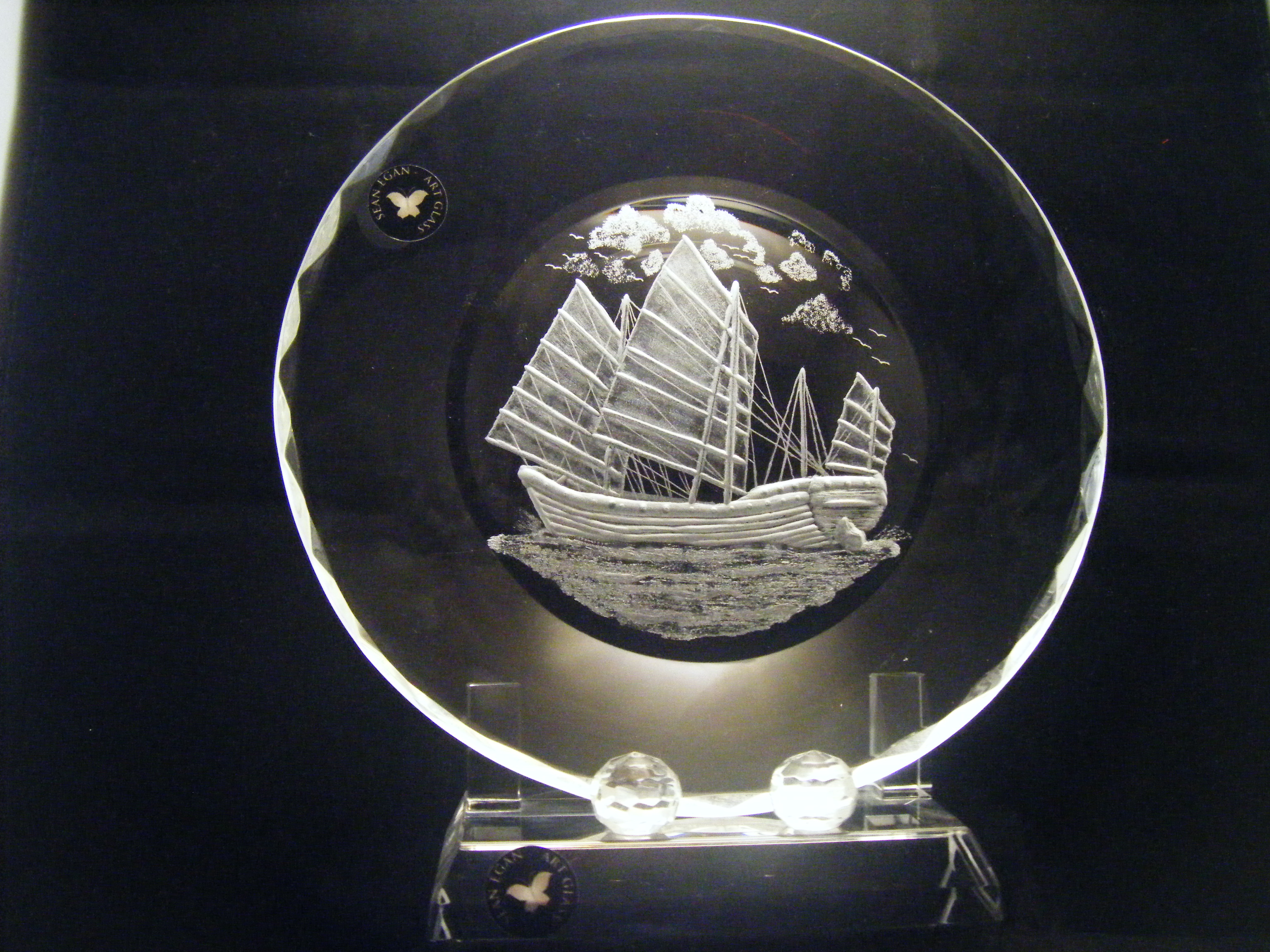Chinese junk boat is engraved on a 8″ crystal Plaque, This image can also be engraved on any other piece of glass/crystal. email me