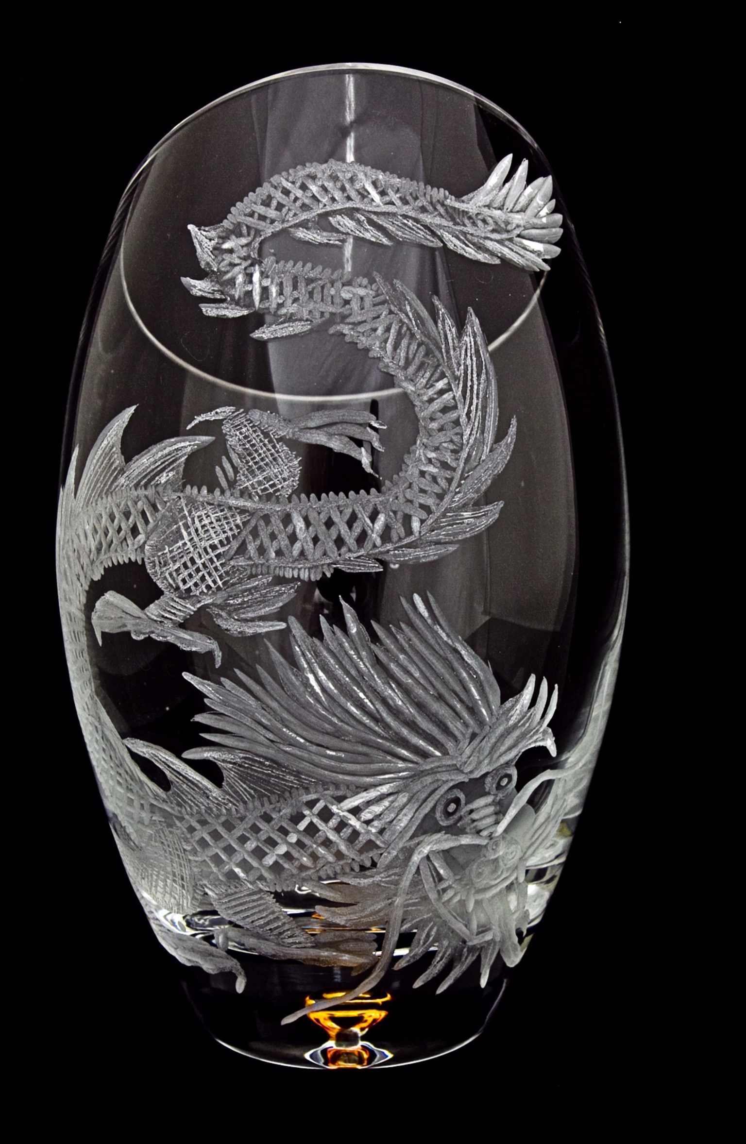 Continue Shopping10" sliced bubble base. Engraved with a chinese dragon. This dragon is excellent on large flat glass items as well. Contact Sean for queries.