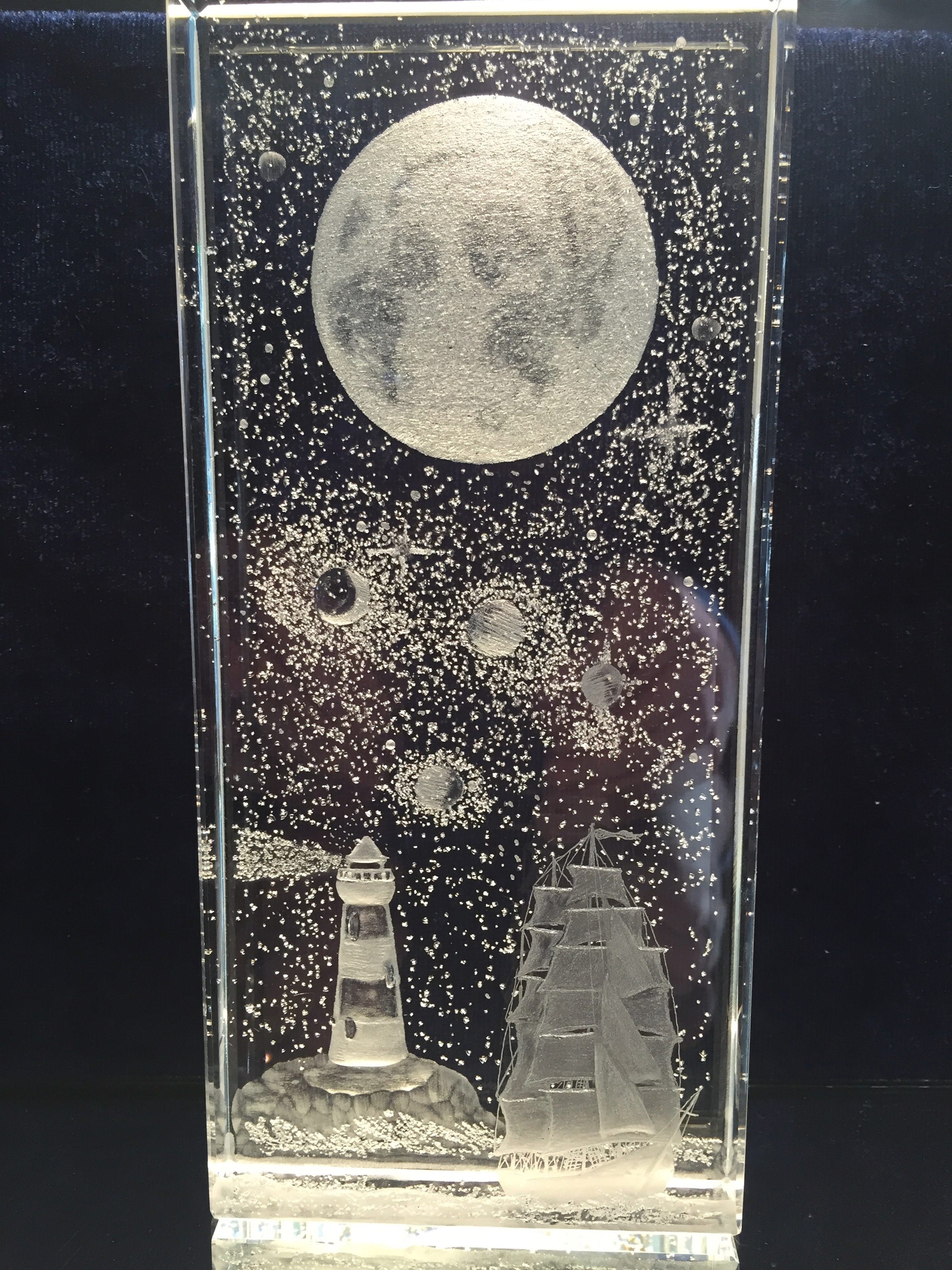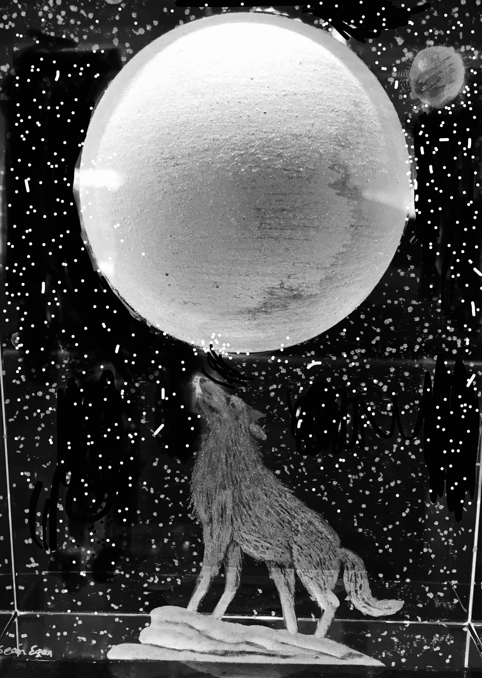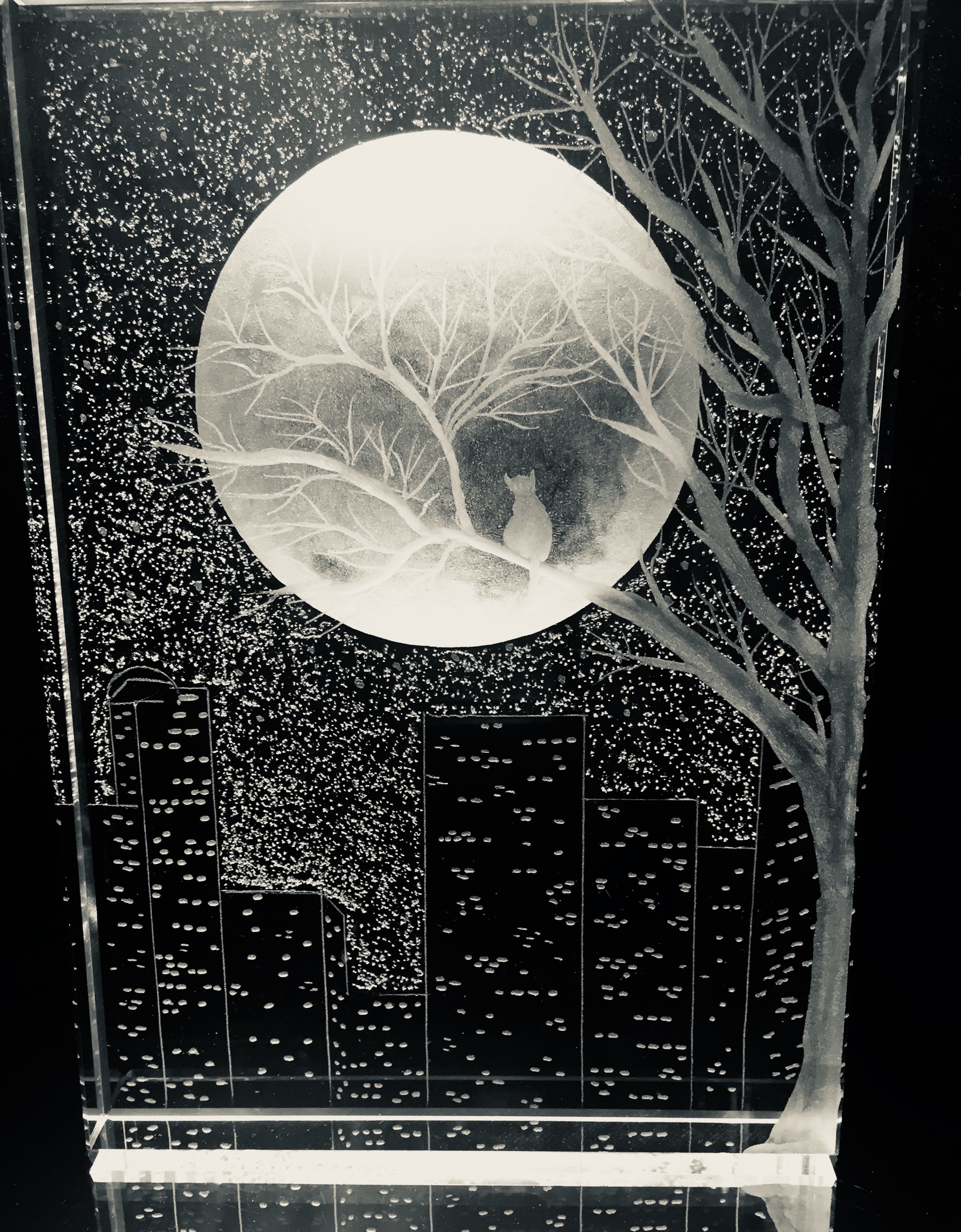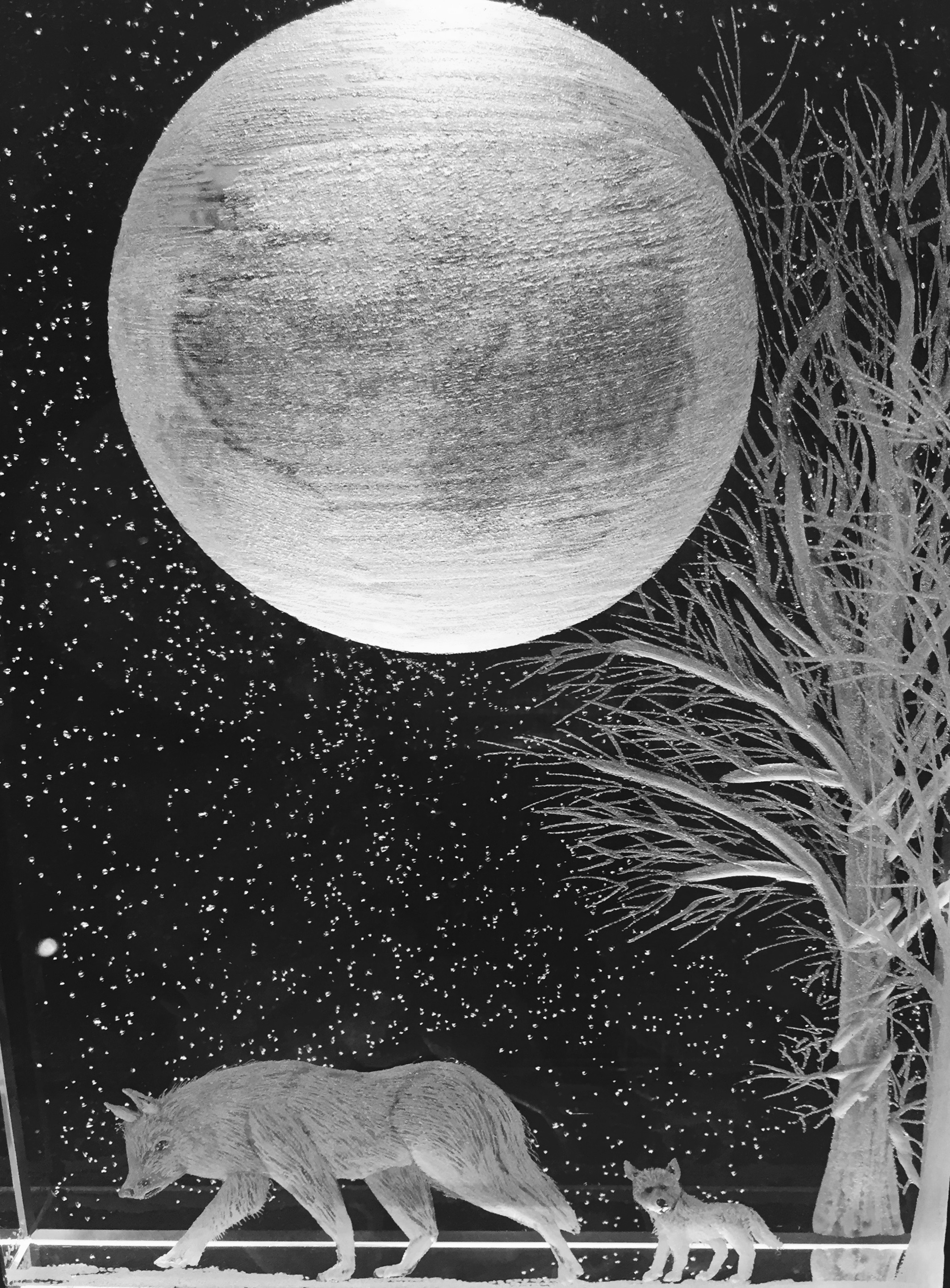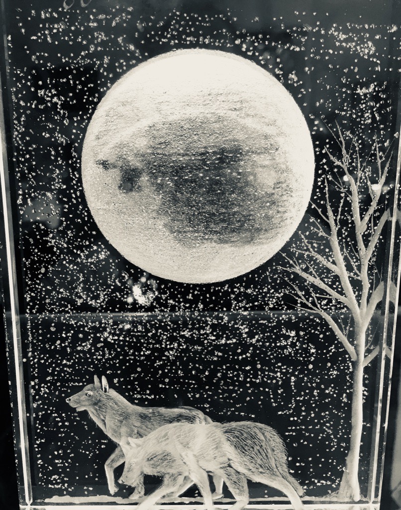Moon light images shows wolves on the prowl, wolf with cub, wolf howling at the moon, a cat on a tree branch , an Owl on a branch, and many more ,email me for your own ideas.